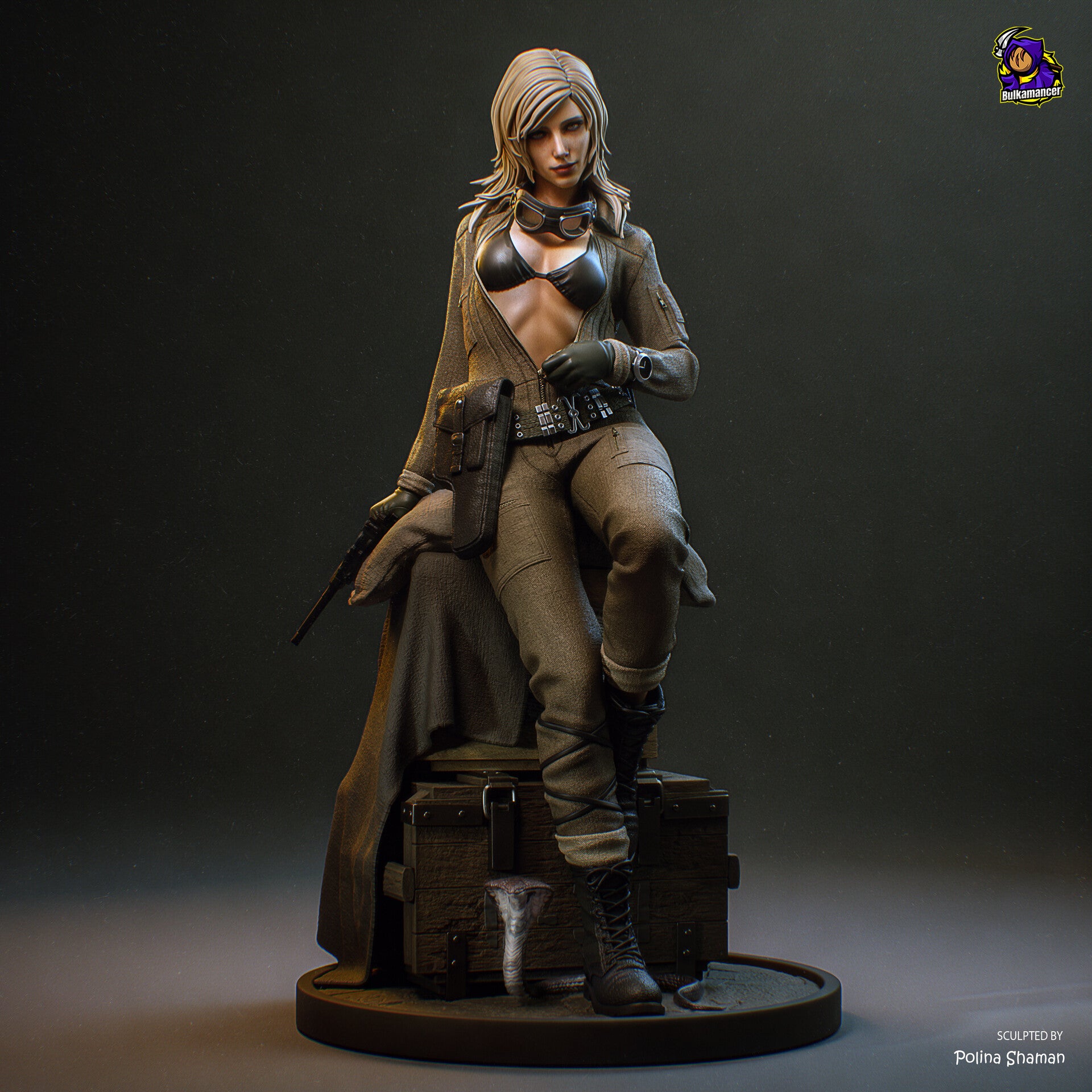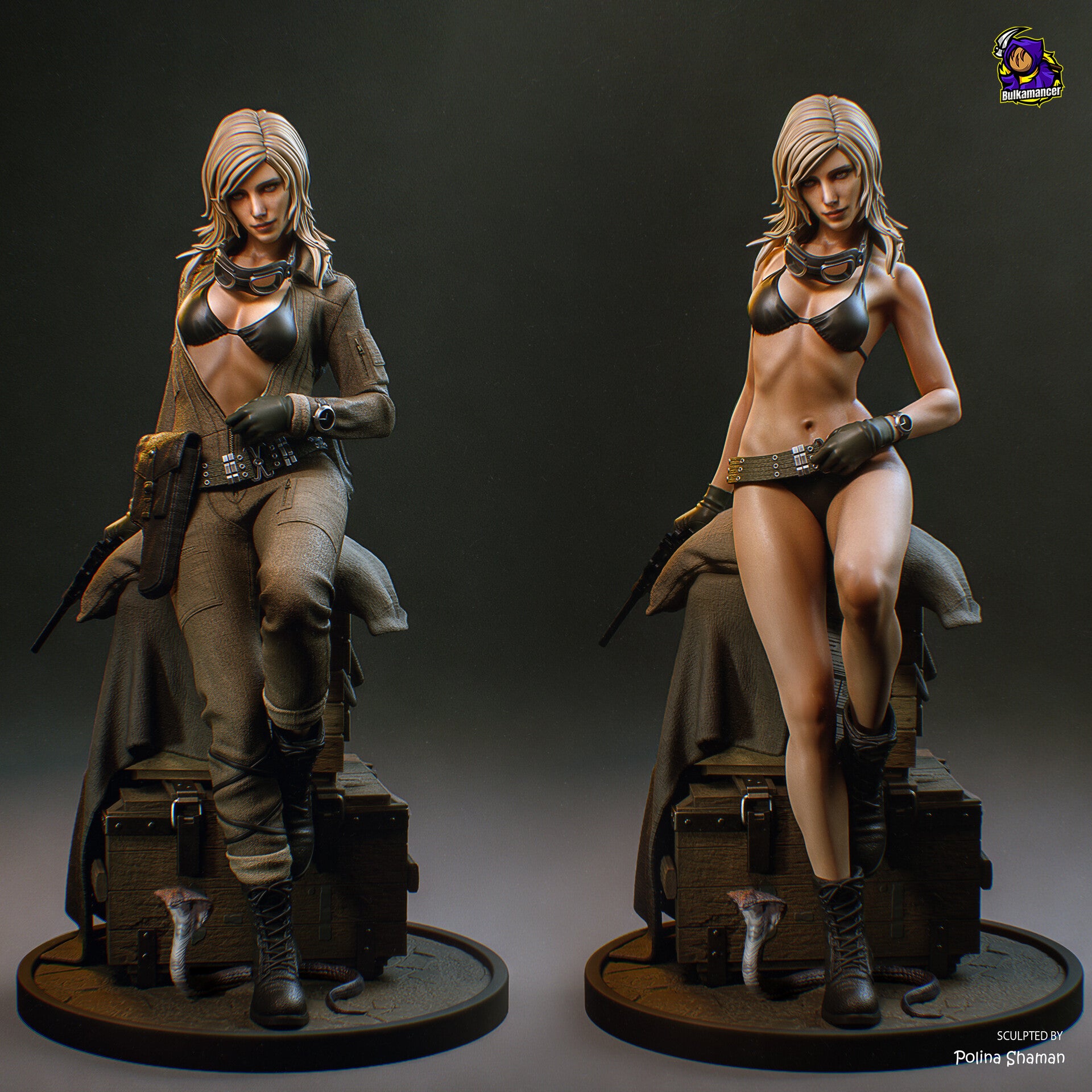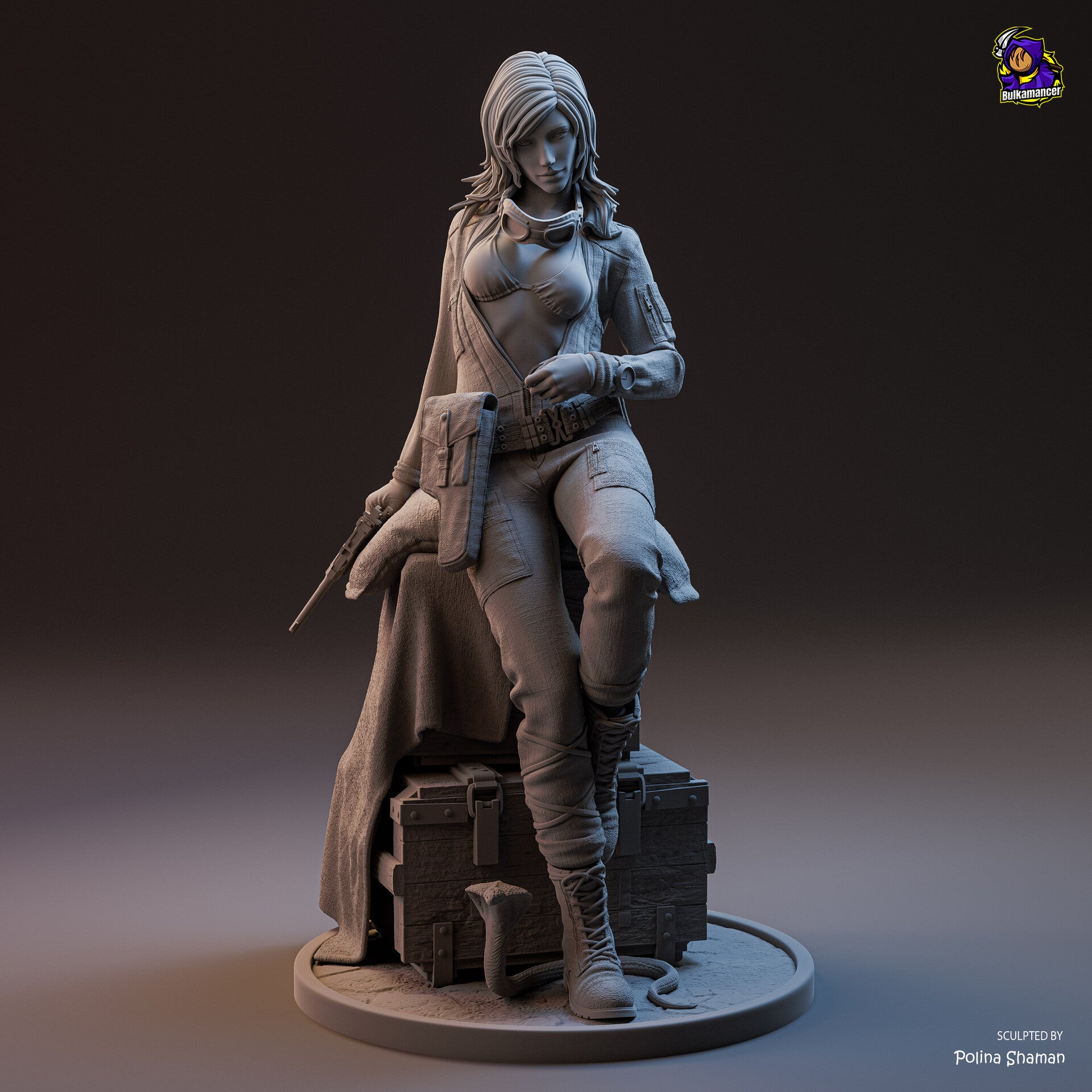 Peinte : La figurine arrivera poncée, apprêtée, peinte et avec un vernis protecteur.